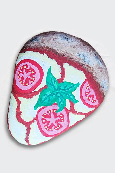 I'm Andi, and I paint rocks. On my Youtube channel, you can hang out with me while I paint and chat and figure out the best way to turn an ordinary river rock into an extraordinary Chicago-style pizza, or a slice of cake, or an emu, or a doughnut or….
